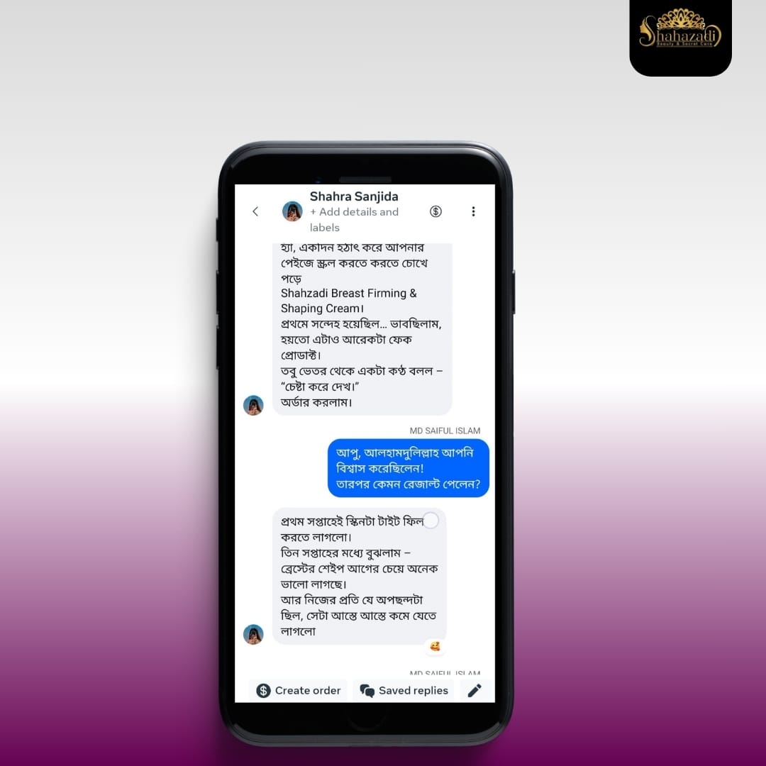 হাজারো নারী নিয়মিত ব্যবহারে দৃশ্যমান পরিবর্তন অনুভব করছেন। এটি একটি কসমেটিক সমাধান যা ব্রেস্টের ফার্মনেস উন্নত করতে সহায়তা করে।